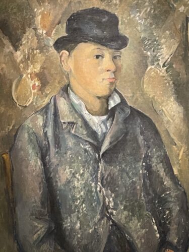Often a biographer does not know the subject personally, or at least not well. But this picture of Cezanne’s son shows that intimate knowledge of your subject can confer an advantage. Here, I must admit that my take on the painting is colored by my own experience of having been the mother of a teenage boy. I’m convinced that the artist knows his son, then 14 or 15 years old, can be a little petulant, but loves him regardless. It’s almost as though I can feel the father accepting this to be the way of teenagers.